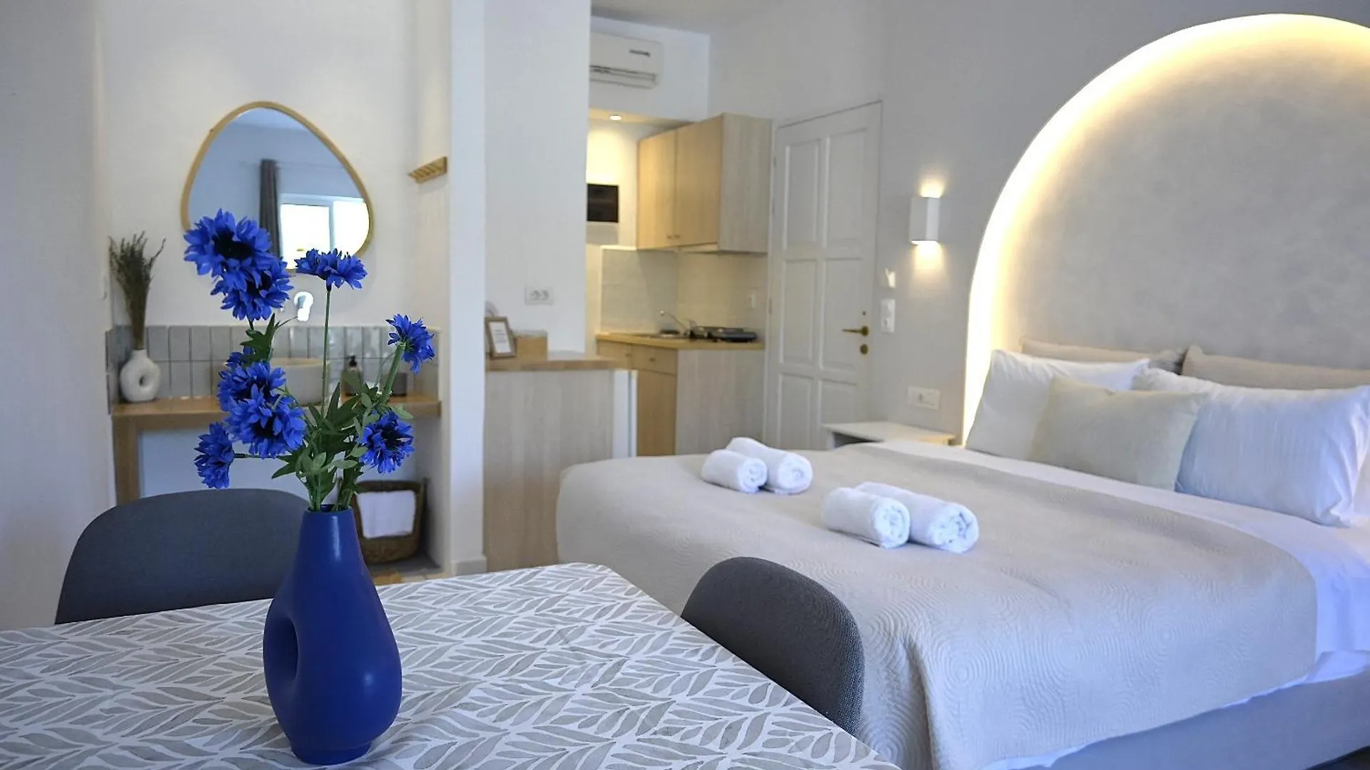 Einige Zimmer in diesem Marika Studios & Apartments stellen eine Küchenzeile und eine Essecke zur Verfügung. Und es erwarten Sie noch weitere Annehmlichkeiten, vor allem eine individuelle Klimaregelung, Zentralheizung und ein Bügeleisen. Dieses Marika Studios & Apartments verfügt über ein privates Badezimmer mit einer getrennten Toilette und einer Dusche in den Zimmern. Die geräumigen Zimmer haben den Blick aufs Meer.