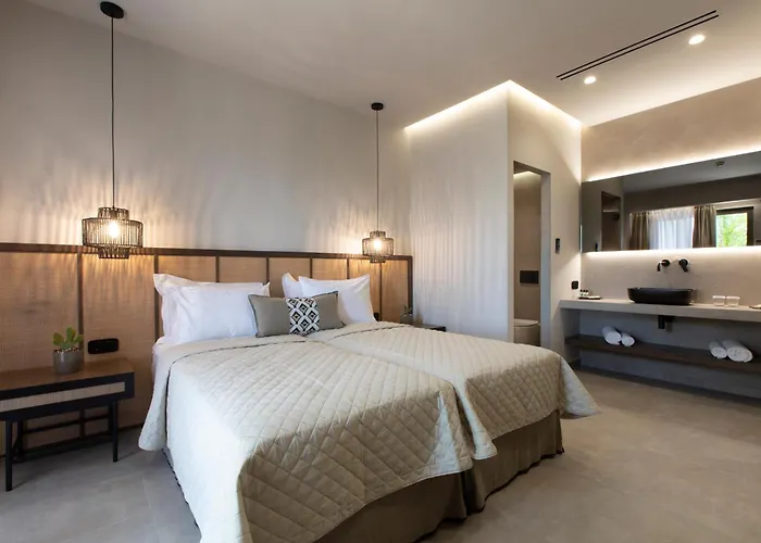 Το Aelia Living Aparthotel Σταυρός 4 αστέρων απέχει 350 μέτρα από την παραλία, και προσφέρει δωμάτια με θέα στο αίθριο.
