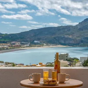 Surplombant la mer de Libye, Panorama Studios And Apartments offre chaque jour un petit déjeuner anglais. Le bar en terrasse est idéal pour boire un verre. Les clients peuvent déguster les plats de la cuisine grecque au Tasomanolis, situé à une distance de 6 minutes à pied.